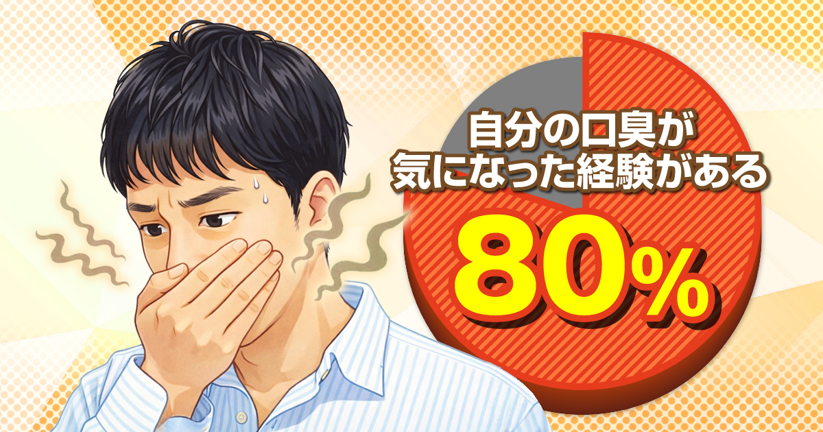 他人の口臭が気になったとき、「もしかして自分も…」と不安になったことがある、という方も多いのではないでしょうか。日本歯科医師会が男女1万人に行ったアンケート調査でも、約8割の人が「自分の口臭が気になった経験がある」と回答しています。
